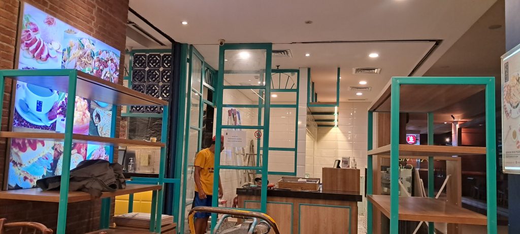 Seluruh pekerjaan dilakukan oleh tenaga ahli berpengalaman dengan standar kerja profesional, khususnya dalam menangani renovasi restoran di lingkungan pusat perbelanjaan.